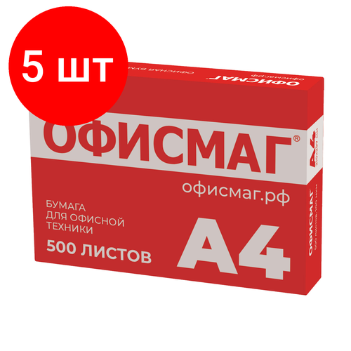 Бумага для принтера Офисмаг Стандарт А4, Комплект 5 пачек по 500 л, 80 г/м2