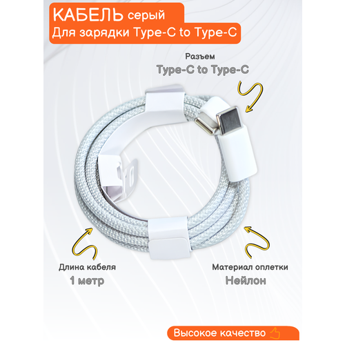 Кабель для зарядки телефона Type C 1м, нейлоновая оплётка, серый