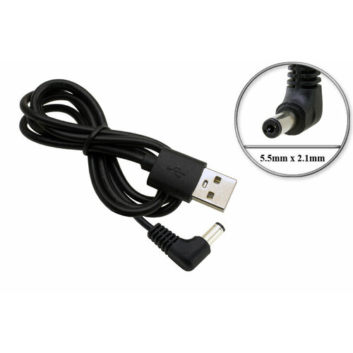 Переходник USB - 5V, 5.5mm x 2.1mm, угловой штекер, 1m, для адаптера (блока) питания, зарядного устройства сетевых устройств и др. оборудования.