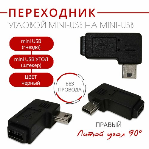 Переходник-адаптер miniUSB угловой, правый угол для видеорегистраторов и т. д.
