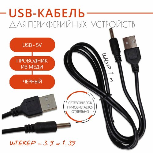 Кабель USB - 5V для зарядки различных устройств с разъемом 3.5x1.35