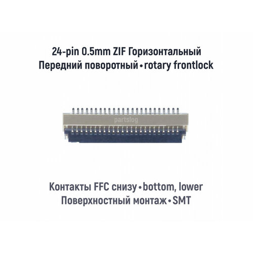 Коннектор для FFC FPC 24-pin шаг 0.5mm ZIF Поворотный фиксатор Контакты снизу SMT