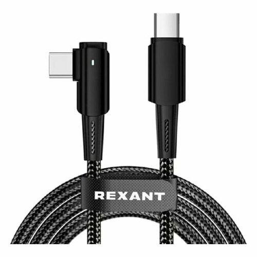 Rexant кабели 18-7070 Кабель Type-C – Type-C, 5А, 100Вт, 1м, в черной нейлоновой оплетке, с угловым штекером и световой индикацией