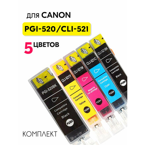 Картриджи PGI-520/CLI-521 для Canon PIXMA iP4600, iP4700, iP3600, MP540, MP550, MP560, MP620, MP630, MP640, MX860, MX870, 5 цветов по 100 мл