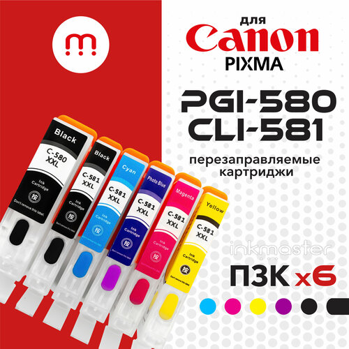 Комплект перезаправляемых картриджей ПЗК PGI-580/CLI-581 XXL (6 цв.) с чипами (без чернил) для принтера Canon PIXMA TS8150 TS8250 TS8350 TS9150 и тд