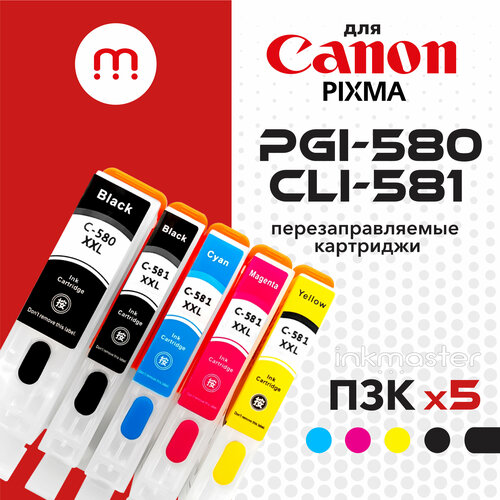 Комплект перезаправляемых картриджей ПЗК PGI-580/CLI-581 XXL (5 цв.) с чипами (без чернил) для принтера Canon PIXMA TS8150 TS8250 TS8350 TS9150 и тд