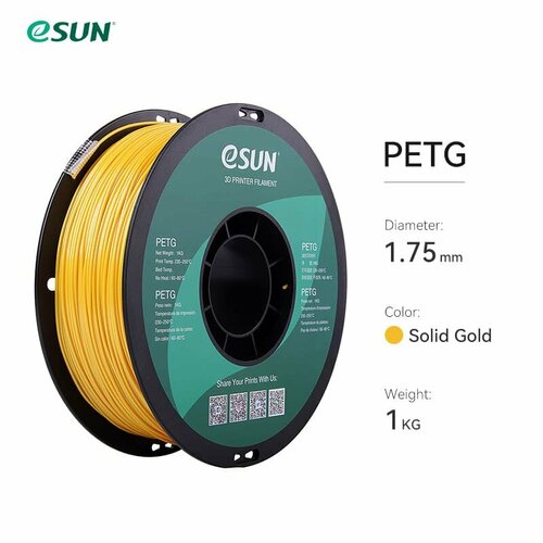 Филамент ESUN PETG для 3D принтера 1.75мм, Solid золотой 1 кг.