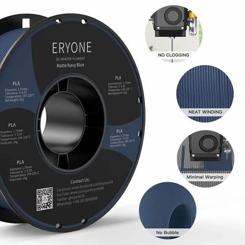 PLA пластик (филамент) для 3д принтера Eryone Матовый Тёмно синий 1,75 мм 1 кг