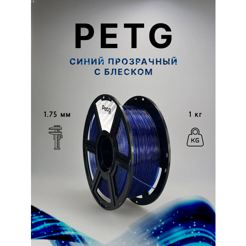 Пластик для 3д печати "НИТ", Petg синий прозрачный с блеском (0040) 1кг