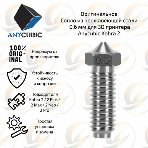 Оригинальное сопло из нержавеющей стали 0.6 мм для 3D принтера Anycubic Kobra 2