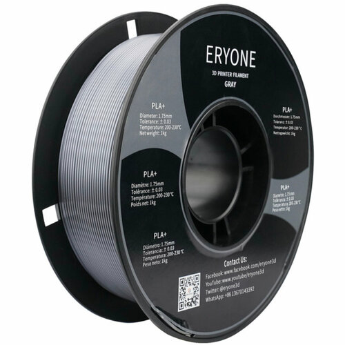 ERYONE Нить PLA Plus для 3D принтера, 1 кг (1,75 фунта), 0,03 мм/Серый