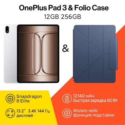 Планшет OnePlus Pad 3 12/256 ГБ, 13.2" экран, серебро, Чехол-фолио ONEPLUS Pad 3 Folio Case, функция подставки, Синева