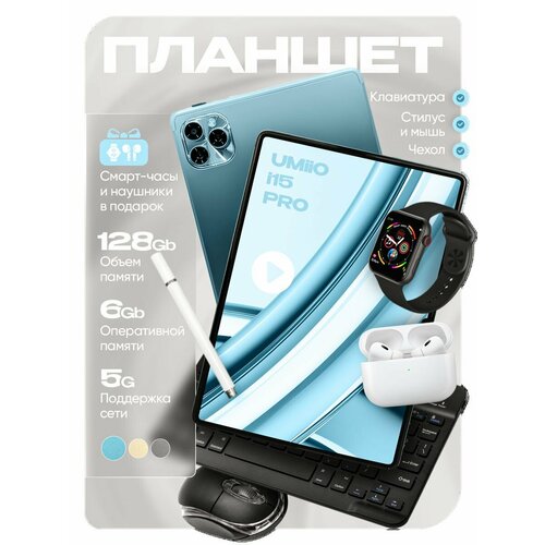 Планшет Umiio 60 ultra с клавиатурой 10.1, Android 12, 6gb +128gb, Голубой