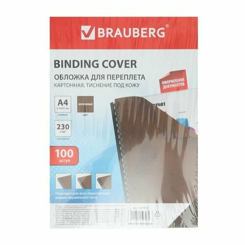 Обложки для переплета A4, 230 г/м2, 100 листов, картонные, коричневые, тиснение под Кожу, 530951