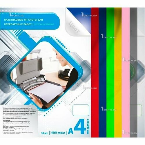 Обложки для переплета Bulros пластиковые прозрачные A4, 400 мкм розовые матовые (50 шт.)