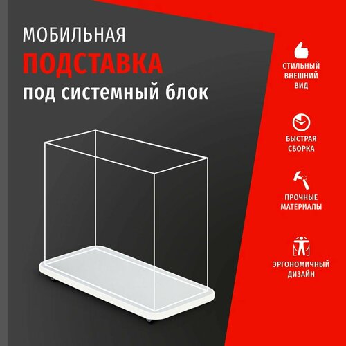 Благодаря подставки, системный блок будет защищен от случайных толчков, механических повреждений, пыли и влаги. Использование подставки, сделает системный блок более мобильным, компьютер можно легко перемещать по поверхности пола, что существенно упростит процесс уборки.