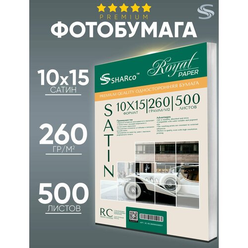 Фотобумага премиум класса Sharco сатиновая 10х15, 260г, 500 листов Hight Glossy Photo Paper