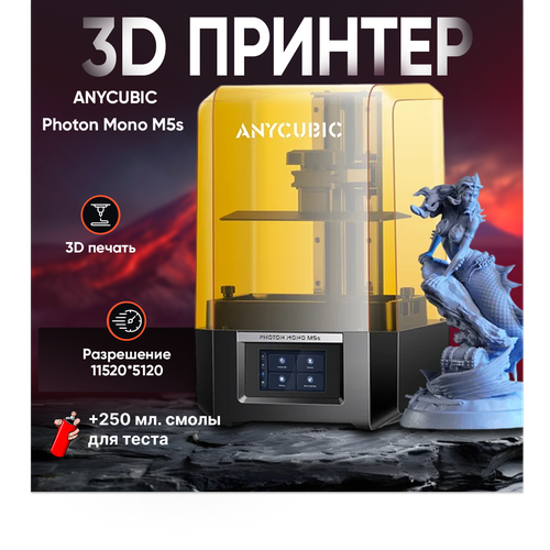 3д принтер ANYCUBIC Photon Mono M5s, 200х218х123, SLS, ЖК-дисплей, 300 мм/сек скорость печати