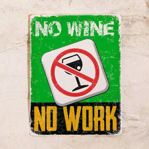 Прикольная табличка для офиса и рабочего стола с надписью Нет вина - нет работы для коллеги, металл, 20х30 см.