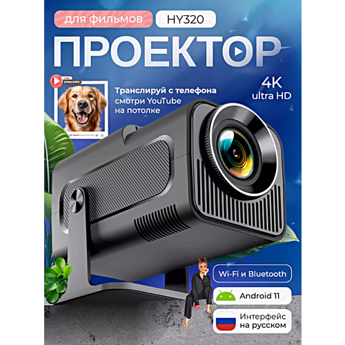 Проектор HY320 PRO Full HD Android TV, Портативный проектор, Проектор Wi-Fi 1080p для дома, дачи, офиса, Черный