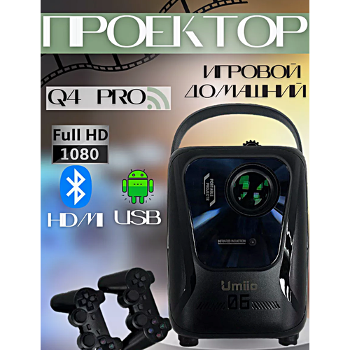 Проектор для домашнего кинотеатра, Bluetooth, WI-Fi, Full HD с русским языком, Umiio Q1, черный