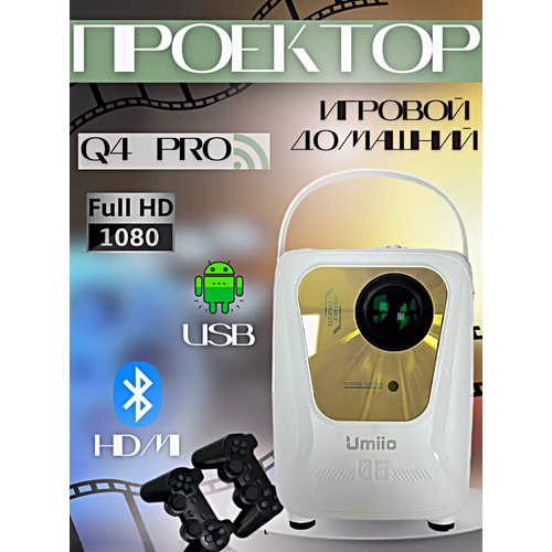 Проектор Umiio Q1 Full HD Android TV, Портативный проектор, Проектор Wi-Fi 1080p для дома, дачи, офиса, Белый