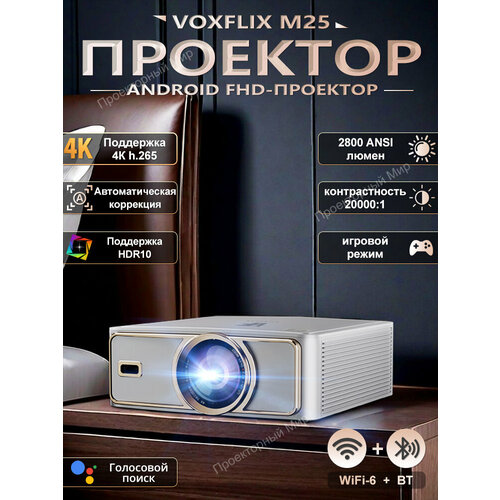 Voxflix M25 Проектор 2024 года, новый умный домашний кинотеатр с Android TV OS, сверхвысокая яркость 2800 ANSI, умный телевизор.