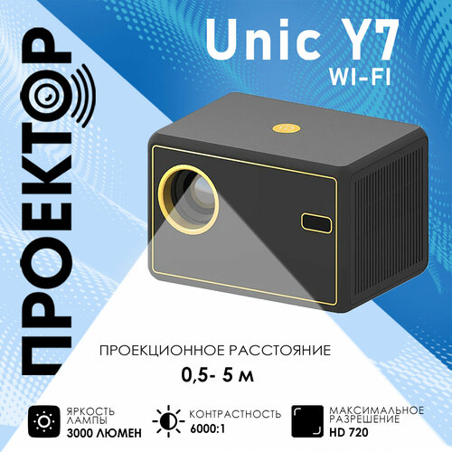 Проектор мультимедийный Unic Y7 Wi-Fi/ Портативный светодиодный видеопроектор HD 720/ Домашний кинопроектор для фильмов и дома