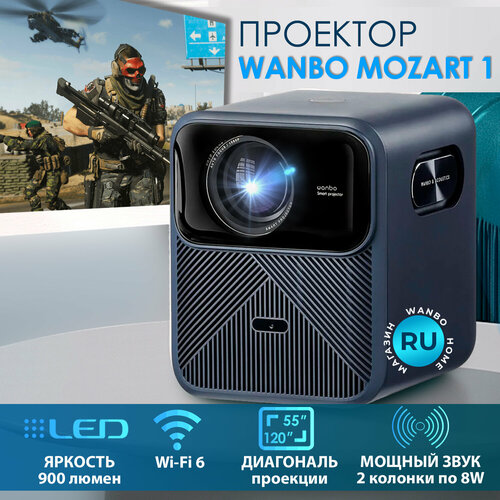 Проектор для домашнего кинотеатра Wanbo Mozart 1, 900 ANSI люмен, сабвуфер, 2Гб+32Гб, автофокус