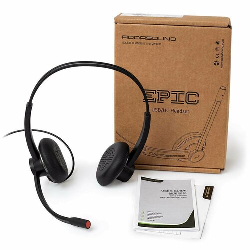 Профессиональная гарнитура с микрофоном для компьютера ADDASOUND Epic 301, USB, шумоподавление, 100% UC совместимость, цвет черно-серый, (ADD-EPIC-301)