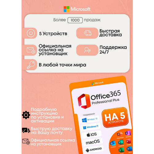Office 365 Pro Plus (активация до 10 устройств / аккаунт с бессрочной подпиской / работает без VPN)
