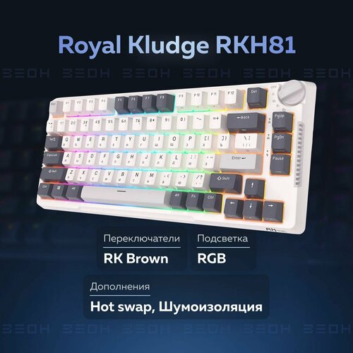 Клавиатура ROYAL KLUDGE RK-S98 механическая полноразмерная (96%), 98 клавиш, 3 типа подключения, Top Mount, профиль PBT Cherry, цвет Camping (switch RK Brown)