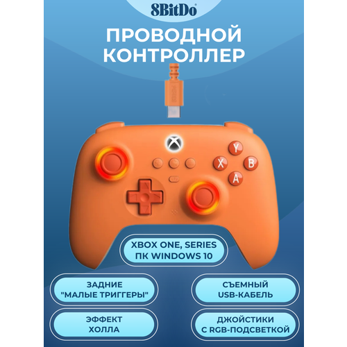 Проводной геймпад 8BitDo Ultimate C для Xbox One, Series, ПК, оранжевый