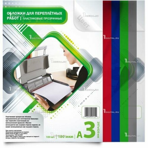 Обложки для переплета Bulros пластиковые прозрачные А3, 180 мкм зеленые глянцевые (100 шт.)