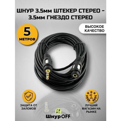 Шнур 3.5мм штекер стерео - 3.5мм гнездо стерео (5 метров)