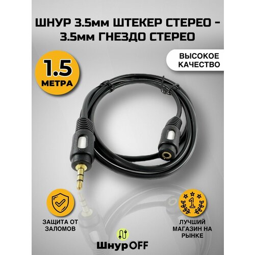 Шнур 3.5мм штекер стерео - 3.5мм гнездо стерео (1.5 метра)