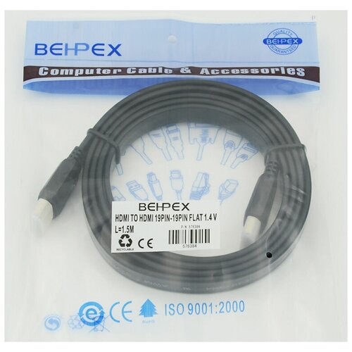 Кабель аудио-видео Flat v1.4, HDMI (m) - HDMI (m) , ver 1.4, 1.5м, FLAT