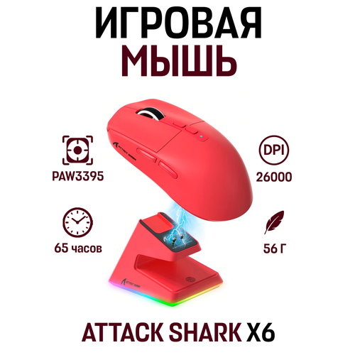 Игровая мышь ATTACK SHARK X6 PAW3395 беспроводная с подставкой
