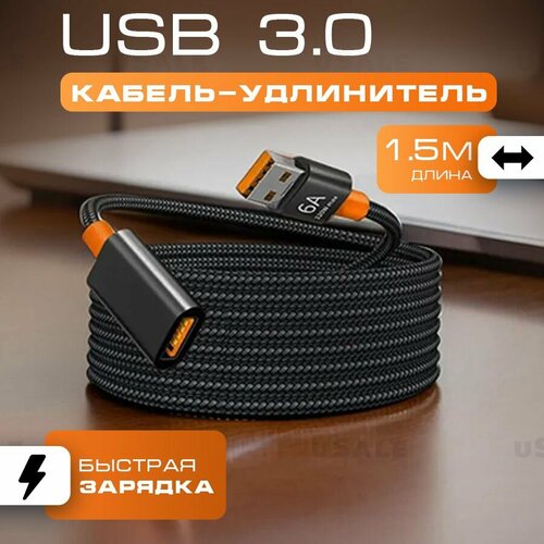 Удлинитель USB 3.0 высокоскоростной 1метр 6А для компьютера зарядки флешки юсб хаба