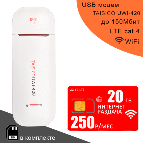 Беспроводной 3G 4G LTE модем TAISICO UWI-420 + cим карта с интернетом и раздачей в сети мтс, 20ГБ за 250р/мес