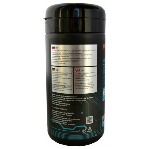 Defender Салфетки для электроники Defender CLN 30320 Optima 100 шт, туба многоразовая салфетка+влажные салфетки 100 шт. 170x110 мм, 1100 мл, белый, 1 уп.