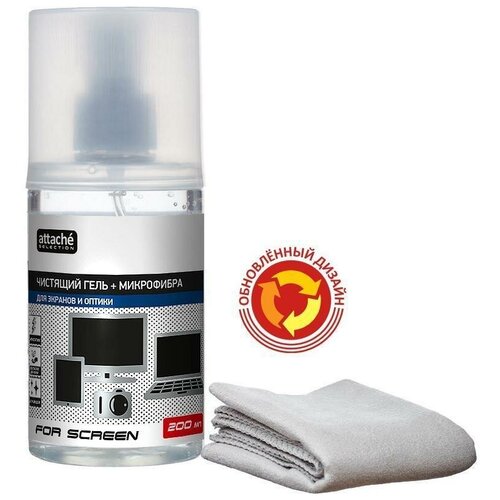 Чистящий набор Attache Selection, для мониторов и оптики (салфетка + гель, 200мл), 12 уп.