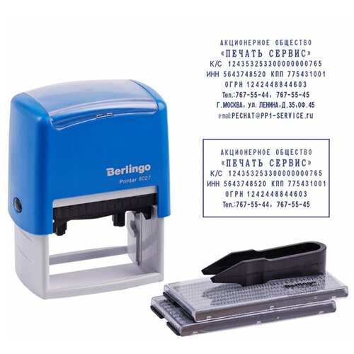 Штамп самонаборный Berlingo "Printer 8027", 8 стр, б/рамки, 6 стр с рамкой, 2 кассы, пластик, 60*40 мм