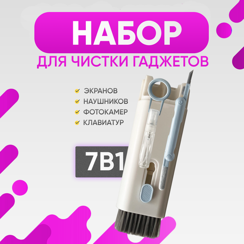 Многофункциональный набор для чистки гаджетов, клавиатуры и наушников 7 в 1. Аксессуары для чистки и детейлинга электроники 7 в 1 п...