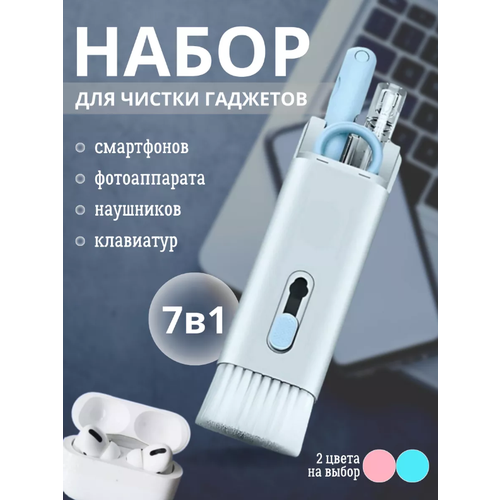 Набор для чистки гаджетов 7в1, щетка для чистки наушников, клавиатуры, экрана. Голубой