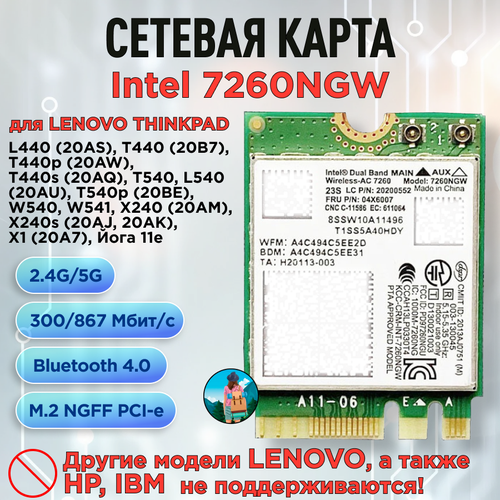 Двухдиапазонная сетевая карта Intel 7260NGW - Lenovo, WIFI карта Intel, m.2, 2.4G и 5G, до 867 Мбит/с, Bluetooth 4.0