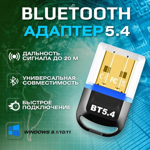 USB Bluetooth 5.4 адаптер для ПК, компьютера, ноутбука, колонок, наушников, геймпада Windows 8.1 / 10 / 11