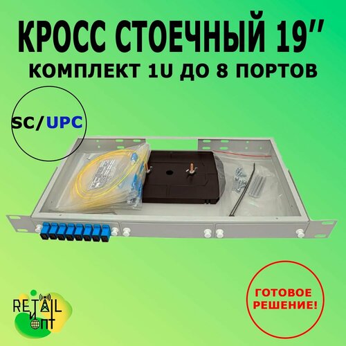 Оптический кросс Retail и ОПТ 19", предсобранный 1U, 8 портов SC/UPC, 9/125 мкм