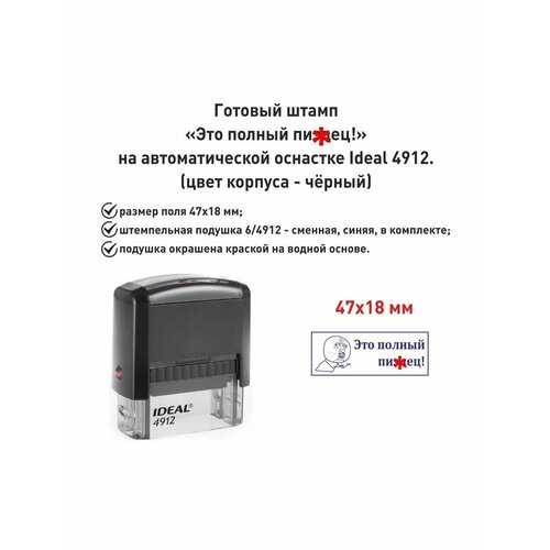 Готовый штамп на автоматической оснастке IDEAL by Trodat 4911 со встроенной штемпельной подушкой синего цвета. Клише изготовлено из...