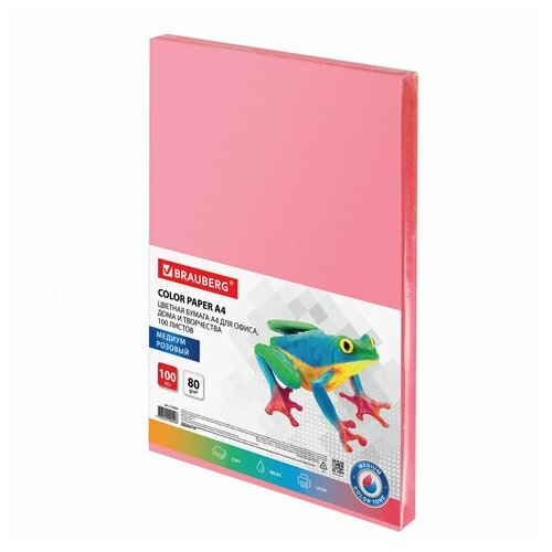 Бумага цветная BRAUBERG, А4, 80 г/м2, 100 л, медиум, розовая, для офисной техники, 112455